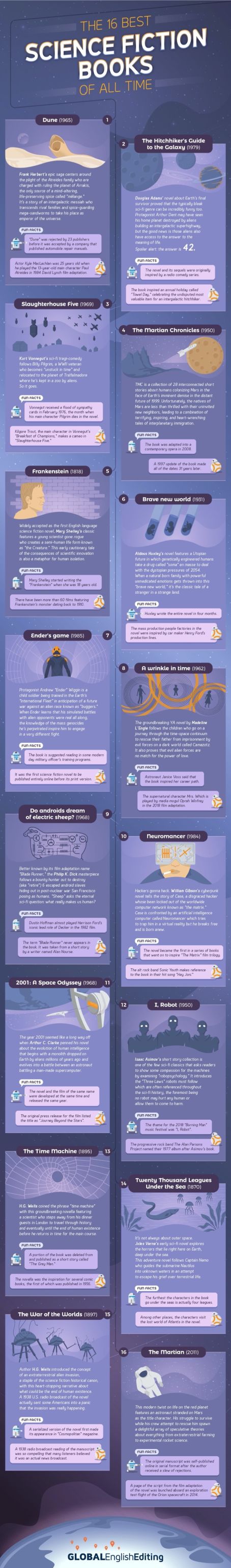🚀 What are the best #scifi books of all time? #infographic | Check out the books focusing on artificial intelligence, time travel, space exploration and more! More