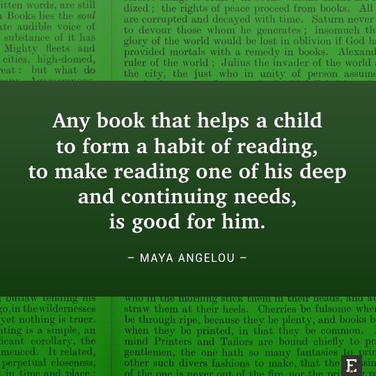 Any book that helps a child to form a habit of reading, to make reading one of his deep and continuing needs, is good for him. –Maya Angelou #quote #books More