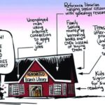 Graph : Why do we need #libraries? / a cartoon by Chris Obrion More
