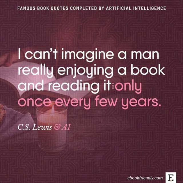 C.S. Lewis: I can’t imagine a man really enjoying a book and reading it… Artificial Intelligence: …only once every few years More