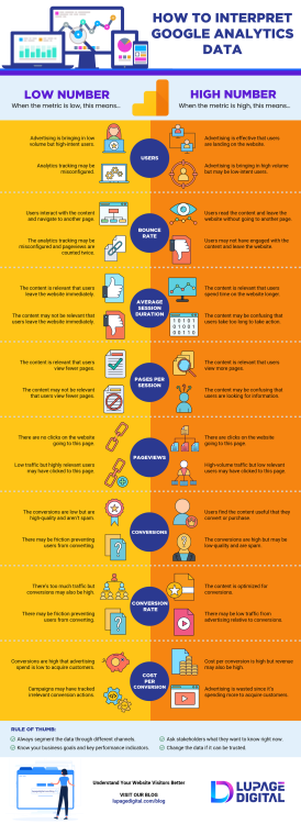 Check out the full size infographic at – https://infographicjournal.com/how-to-interpret-google-analytics-data/