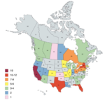 Map : Professional Sports Teams by US State/Canadian Province (NFL, NBA, NHL, MLB, MLS, CFL, XFL)
