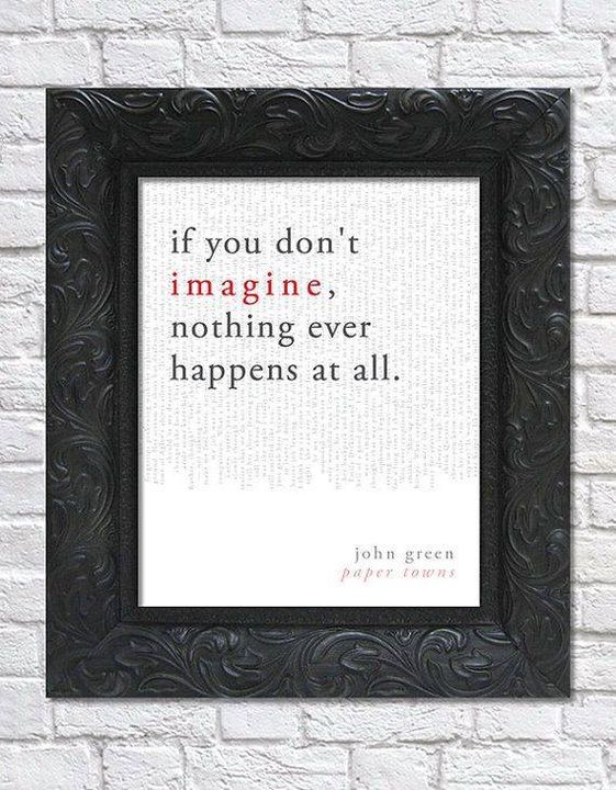 If you don’t imagine, nothing ever happens at all. –John Green, “Paper Towns” More