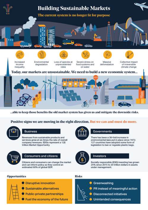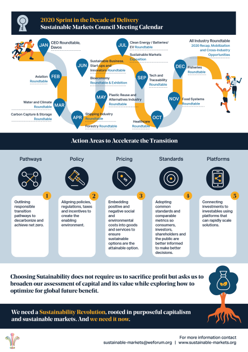 In collaboration with the World Economic Forum, H.R.H. The Prince of Wales launched in Davos 2020 the Sustainable Markets Initiative which is meant to steer up the transition in various sectors of the economy, such as aviation, food, shipping, energy and finance. I have realised for them this infographic which summarises the project mission and their work plan for 2020.