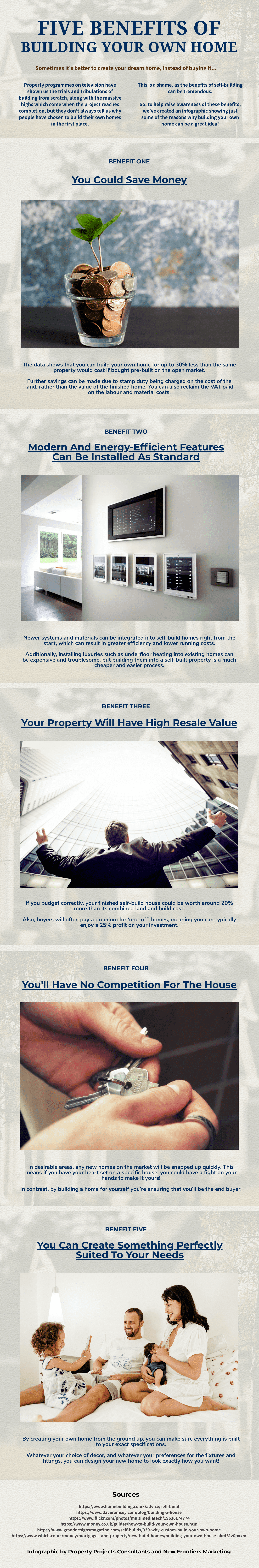 This infographic details some of the five key benefits of building your own home, illuminating the reasons why this has become a more popular option in recent years. Perhaps you take an active interest in the property industry or are even keen to pursue building your own home in future.