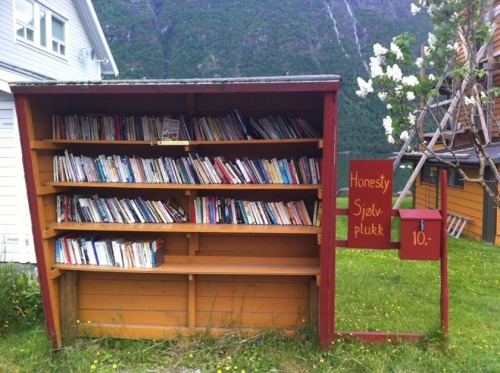 Mundal is a #booktown in the center of Fjærland, by the Sogne Fiord, in Norway. It offers about 2.5 miles of shelving, filled with books. | 📷 A bus stop turned into a bookshop / Photo: Den Norske Bokbyen More