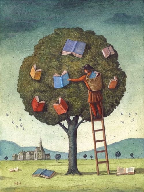 Picking some books from the library / illustration by Mariusz Stawarski More