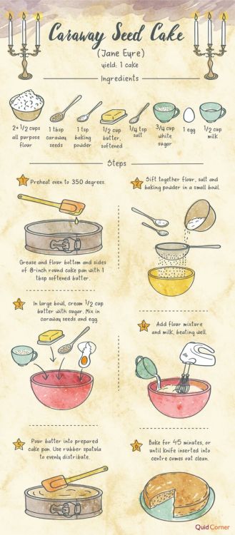 Seed cakes are traditional British cakes flavored with caraway or other flavorful seeds. Here’s the recipe for the one described by Charlotte Brontë in “Jane Eyre” More