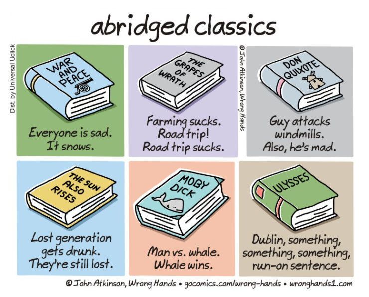 in Infographics Graph : Shortened versions of classic novels😄 / a cartoon by John… March 8, 2020, 5:24 pm 19.5k Views 0 Comments Infographic : Shortened versions of classic novels😄 / a cartoon by John… Shortened versions of classic novels😄 / a cartoon by John Atkinson More 0 shares What do you think? 459 Points Upvote Downvote Leave a Reply Cancel replyYour email address will not be published. Required fields are marked *Comment * Name * Email * Website Next post