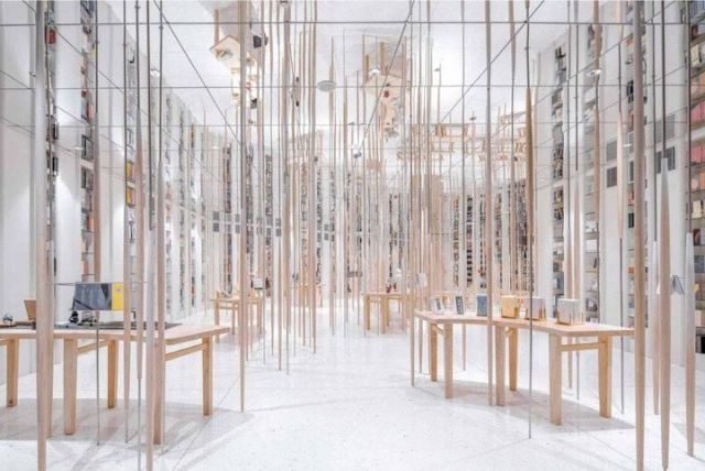 The creative area at Zhongshuge Bookstore in Beijing is a minimalistic, elegant spin on the symbol of Chinese nature – the bamboo grove More