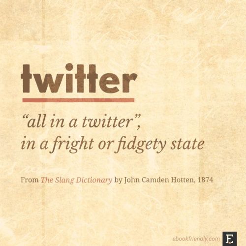 The word “twitter” was popular long before @twitter Twitter. In the 19th century a phrase “all in a twitter” meant “to be in a fright or fidgety state.” Source: The Slang Dictionary by John Camden Hotten, 1874 More