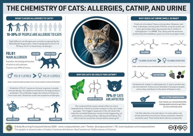 Why are some people allergic to #cats? Why do cats love catnip? What links blackcurrants, wine, and cat urine? The chemical answers are all in this graphic! wp.me/p4aPLT-8dl https://ift.tt/3iJO2YK