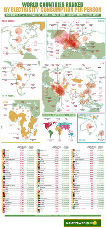 Infographic : World Countries Ranked by Electricity-Consumption Per…