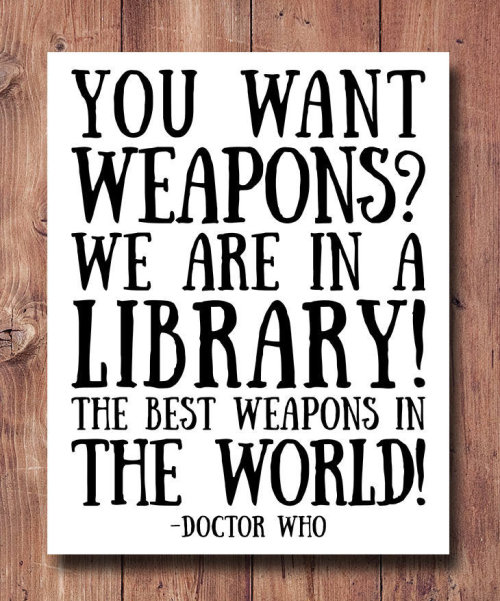 You want weapons? We’re in a library. Books are the best weapon in the world. This room’s the greatest arsenal we could have. Arm yourself! – from Doctor Who, season 2, episode 2 – “Tooth and Claw” More