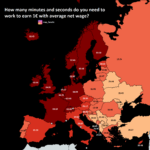 Map : Time needed to earn 1€ with an average net wage