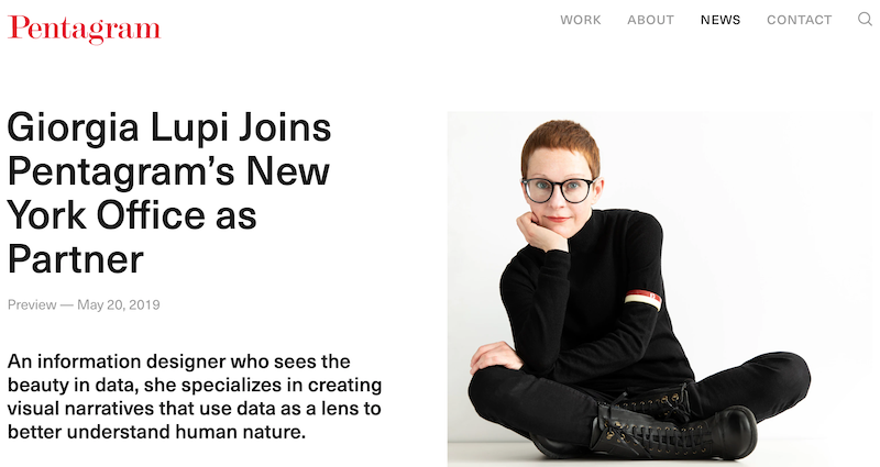(Although this news was announced towards the end of the first half of 2019, and thus technically disqualifying for inclusion here, I’m allowed to cheat because, ultimately, it is I who makes the rules for this game.) Giorgia’s talent and standing in the field has been clear for all to see, for some of us, as far back as 2013, so it is wonderful to see her being rewarded with one of the most esteemed career moves in the design industry: becoming a partner at Pentagram, New York. This is unquestionably a significant milestone, as expressed in this piece, which not only recognises that Giorgia is the first new Pentagram partner in New York for seven years, but that in doing so as an Information Designer, this move “represents a further effort on the part of the design firm to expand beyond traditional graphic design”. She has already been busy creating a “data-driven fashion collection inspired by three trailblazing women in science” and I can’t wait to see the future holds. Congrats Giorgia!