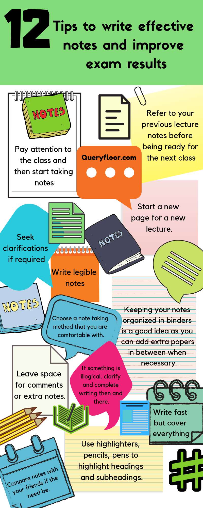 Infographic : 12 Tips to write effective notes and improve exam results.