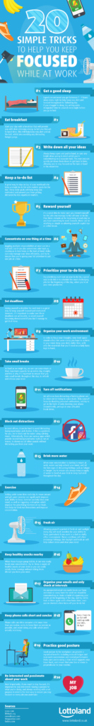 Infographic : 20 Simple Tricks to Help Keep You Focused at Work
