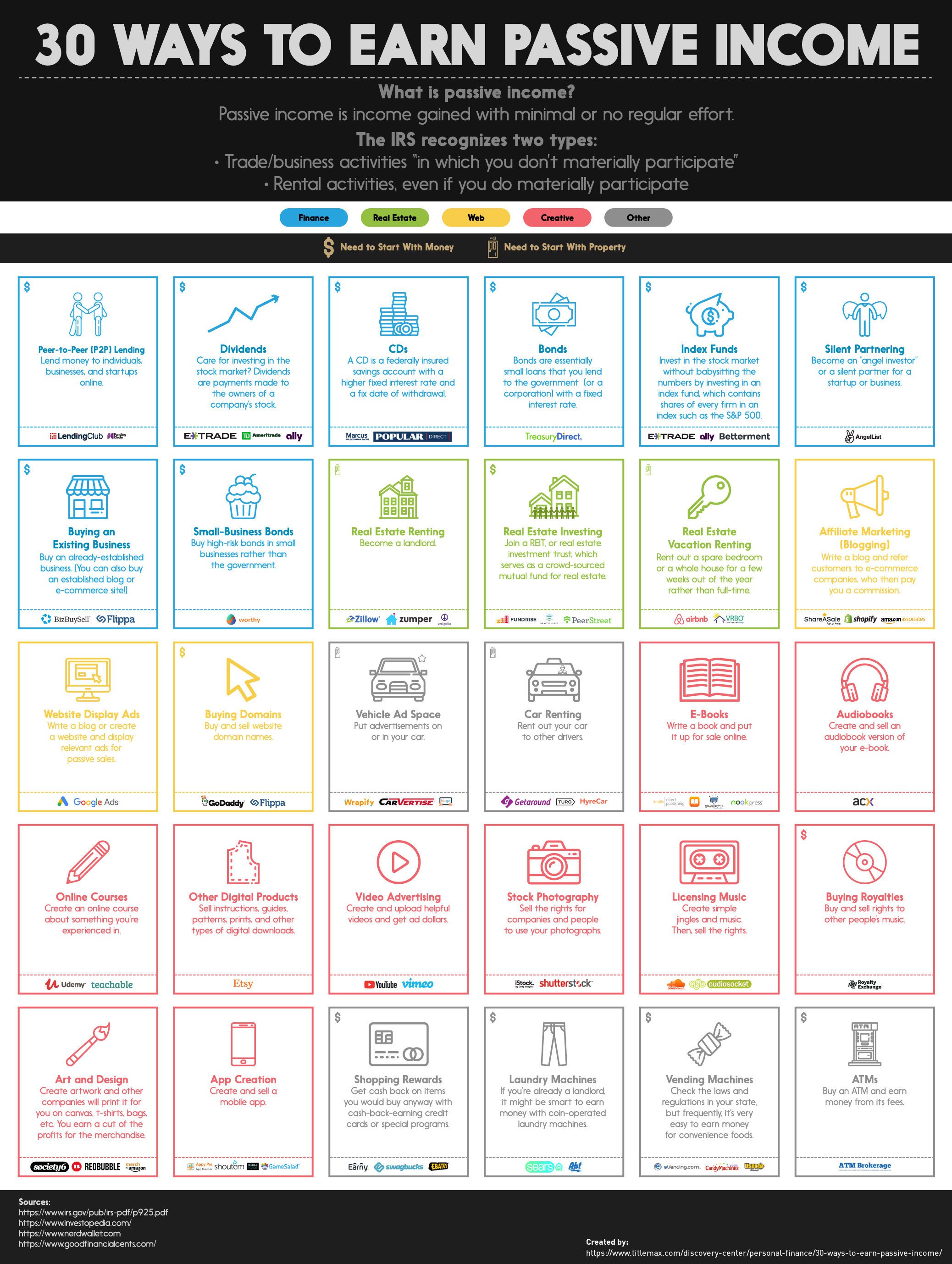 Infographic : 30 ways to earn passive income