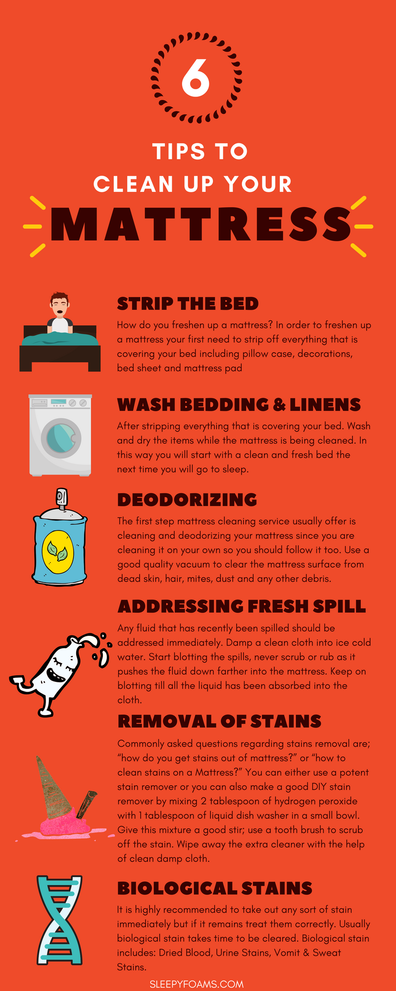 Infographic : 6 Tips to Clean Up Your Mattress Easily.