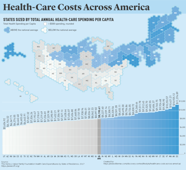 Infographic : A To-Scale Map of America, Sized By Health-Care Spending Per Capita