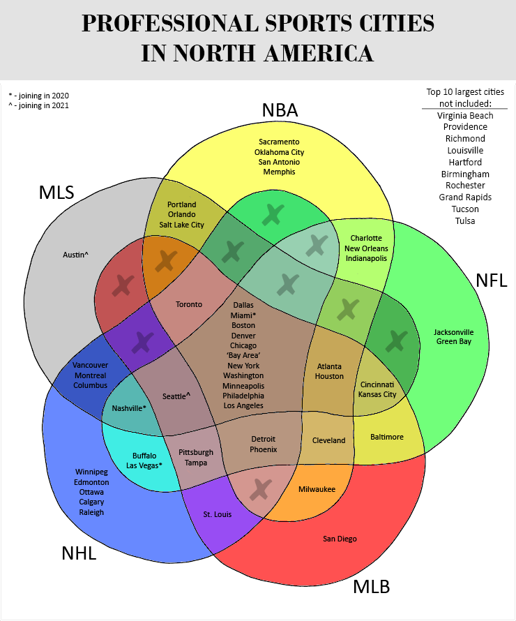 Infographic : A Venn Diagram of North American Sports Cities [OC]