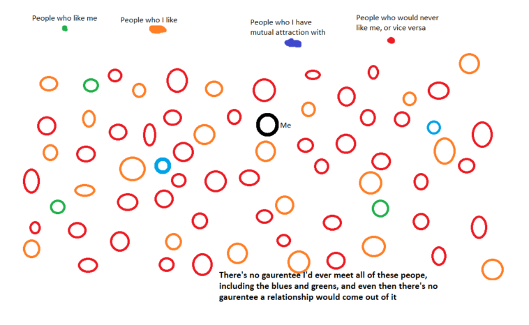 A visualization of the chances (speculation) of meeting someone with sexual/romantic attraction in a given social area