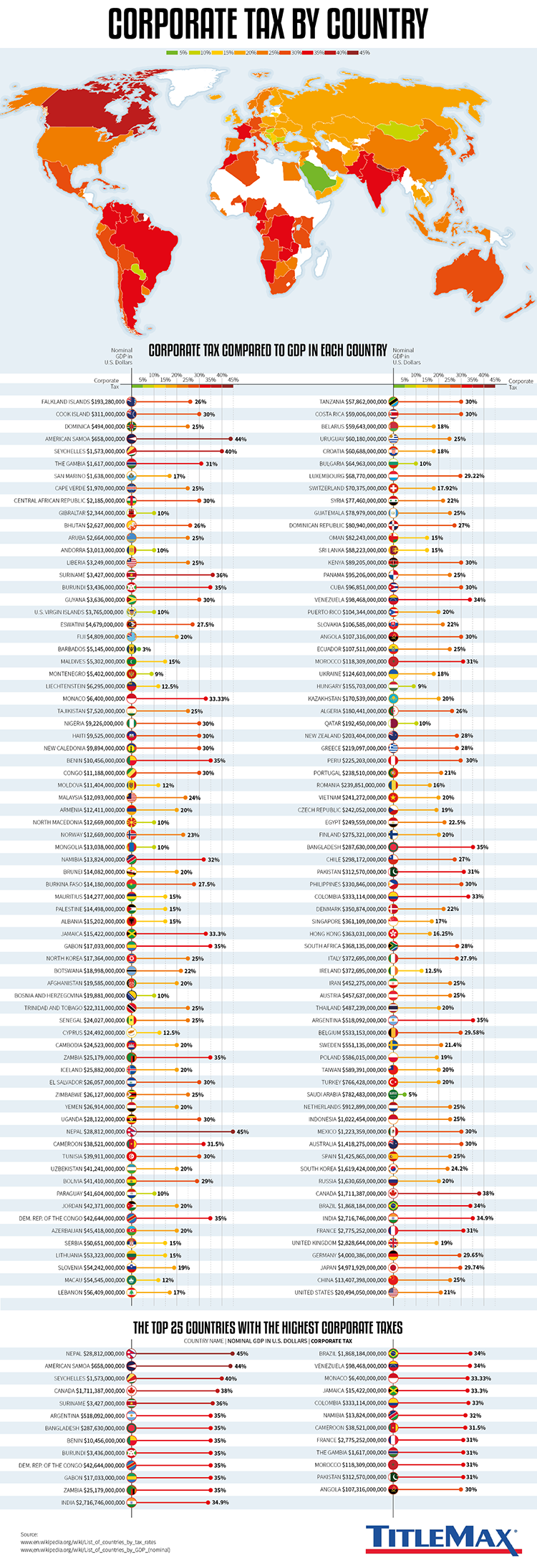 Corporate taxes by country around the world (Nepal’s is the highest at 45%!)
