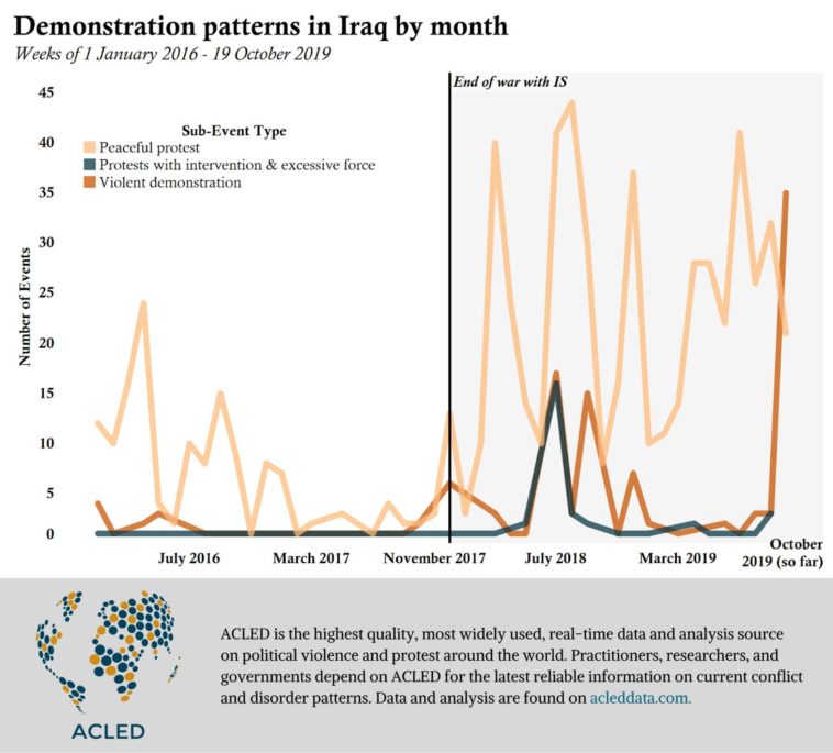 Infographic : Demonstration patterns in Iraq. Jan 2016 – Oct 2019