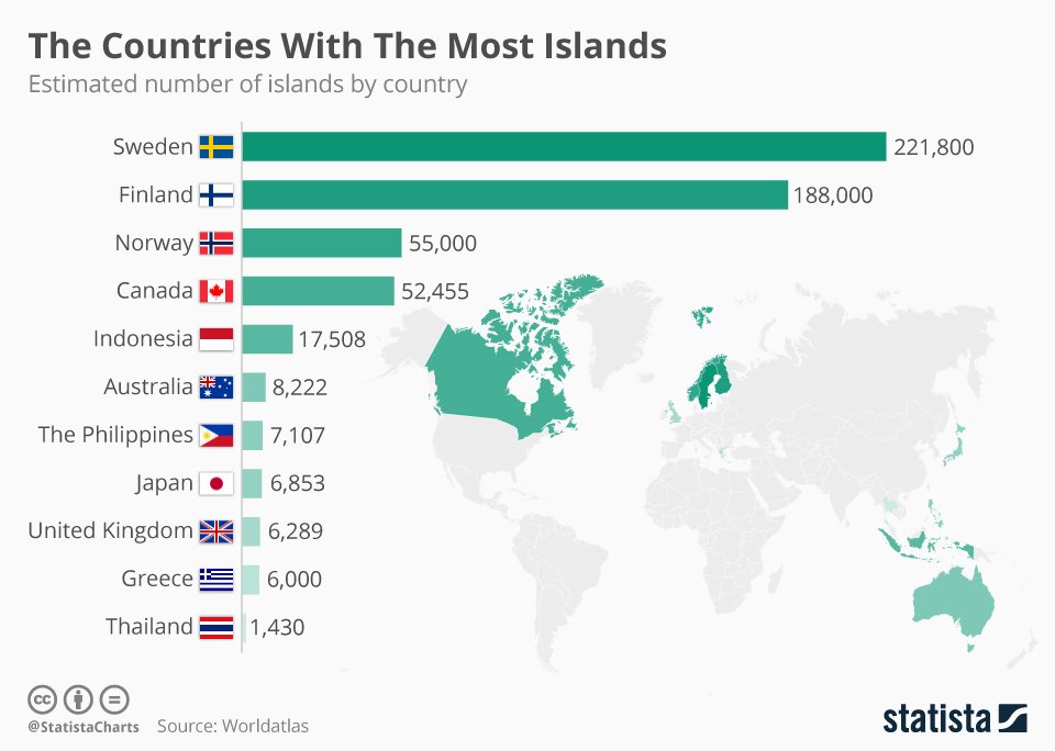 Infographic : Estimated number of islands by country – Sweden really ran away with it.