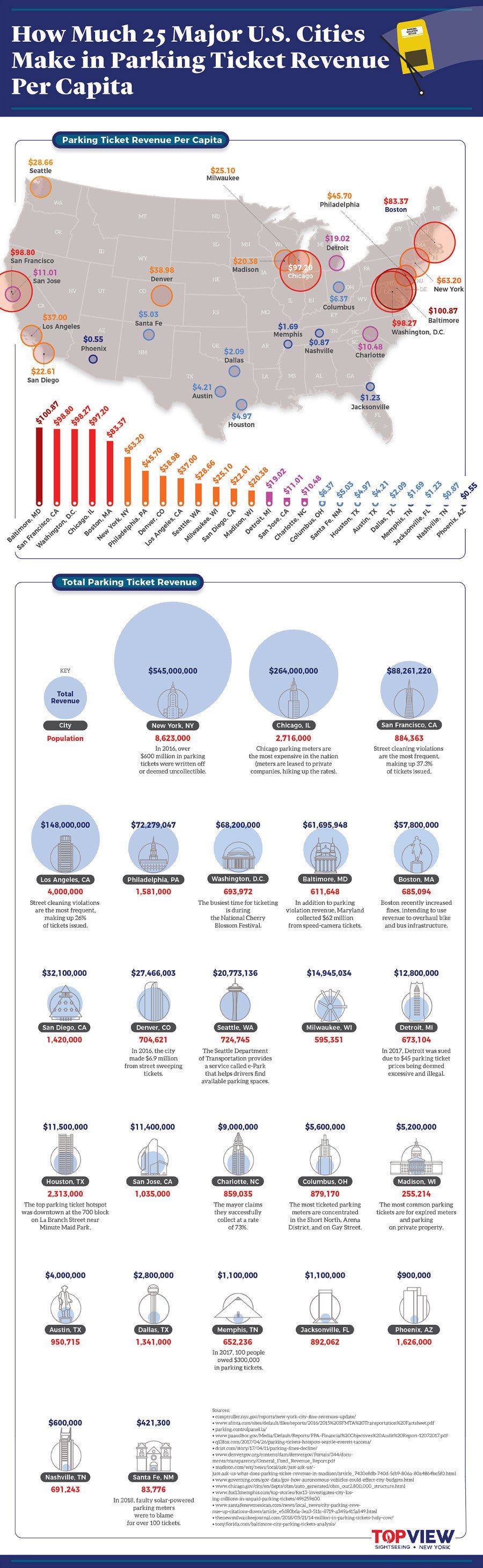 Infographic : How much 25 major U.S. cities make in parking ticket revenue per capita
