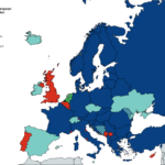 Map : How the names of European countries end in Italian language