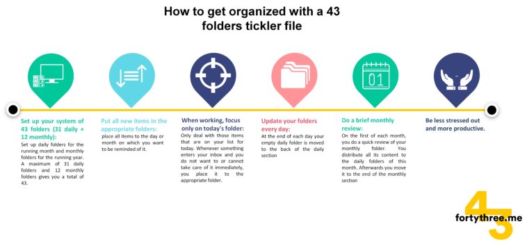 Infographic : How to get organized with a 43 folders tickler file (from www.fortythree.me)