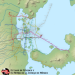 Map : Map of Mexico City’s subway overlayed on a map of Tenochtitlan/ Lake Texcoco. From The Decolonial Atlas.