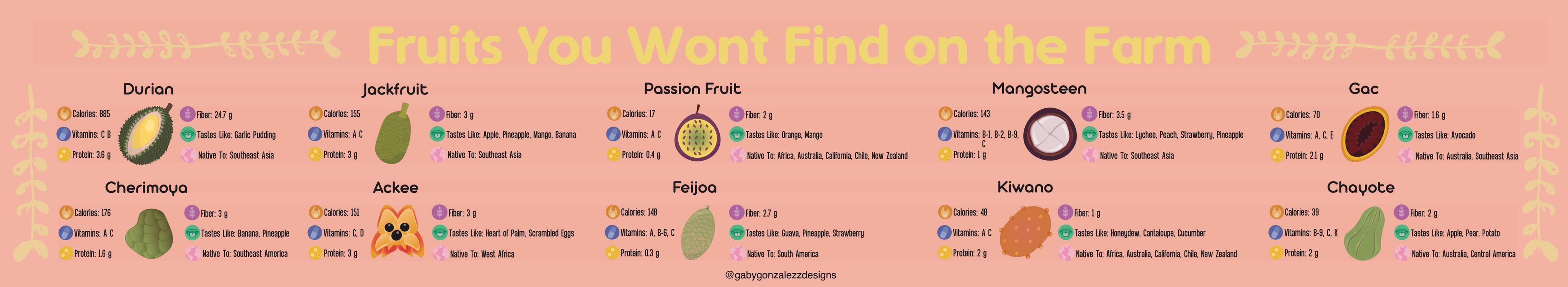 Infographic : Infographic I made about the nutritional values of exotic fruits!