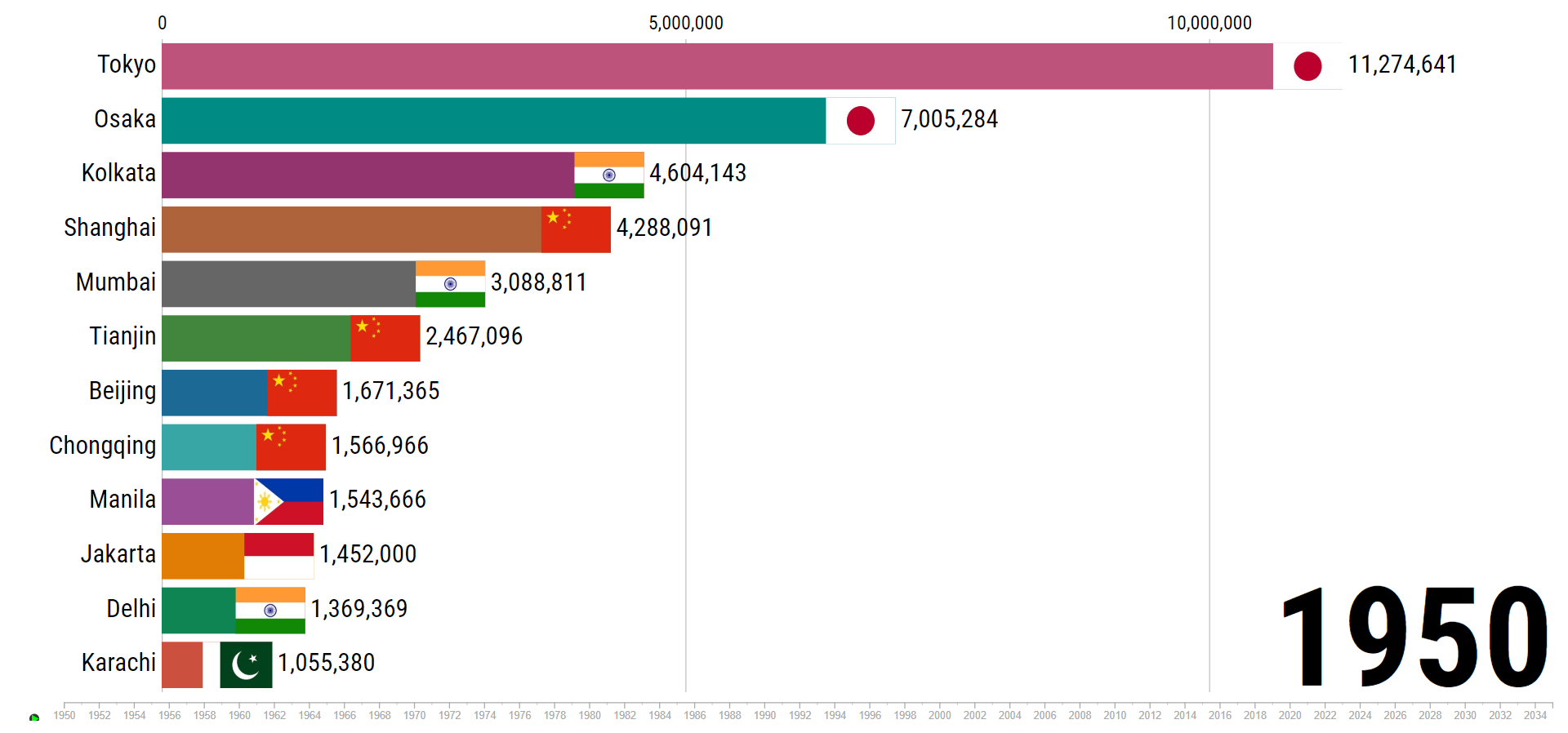 Largest Cities of ASIA in 1950