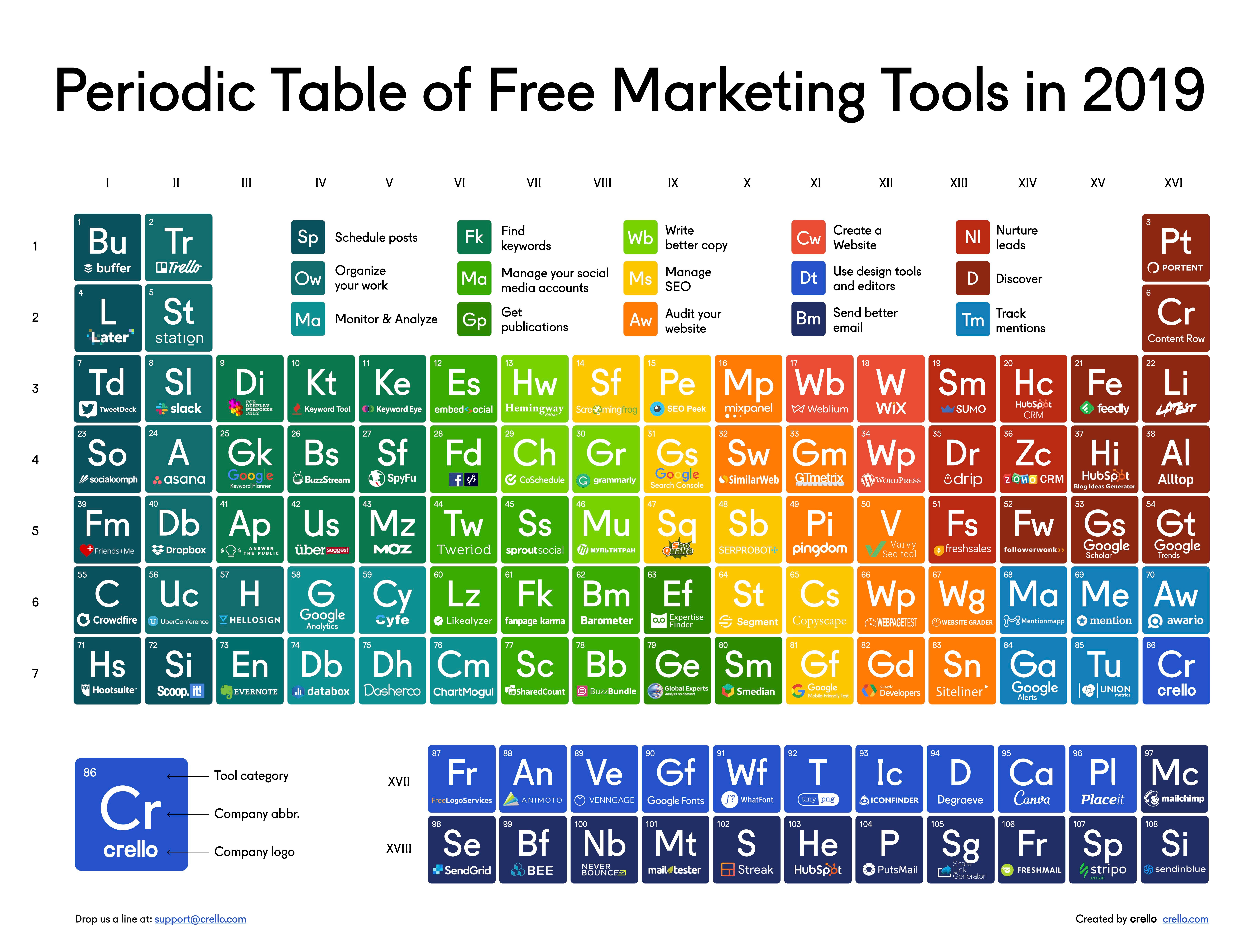 Periodic Table of Free Marketing Tools in 2019