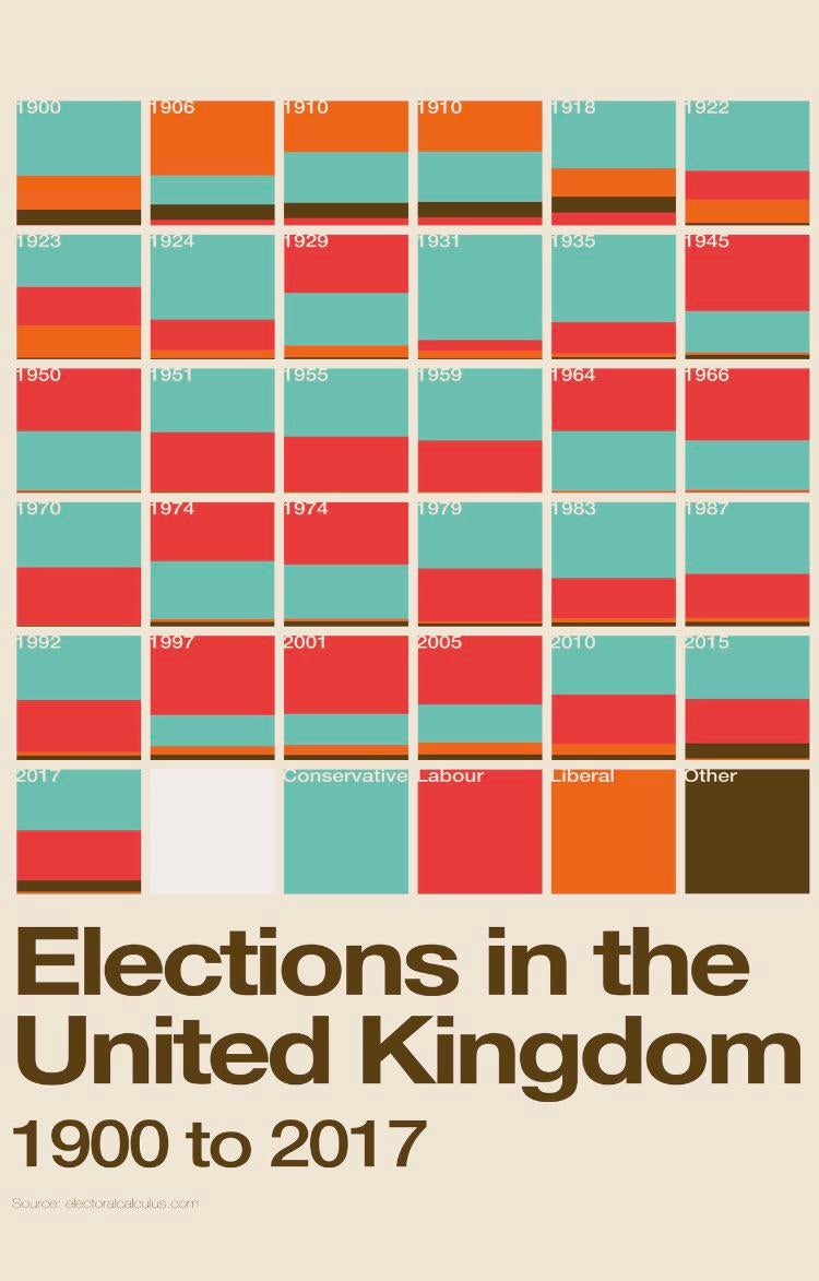 Infographic : Seat share at every election since 2017…with one square blank, anyone care to make some predictions?