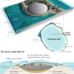 Infographic : “Rising seas could unseal a toxic tomb” in the article titled “How the U.S. betrayed the Marshall Islands, kindling the next nuclear disaster” by Susanne Rust, published on 10 November 2019. Credit: Lorena Iñiguez Elebee and Sean Greene, Los Angeles Times