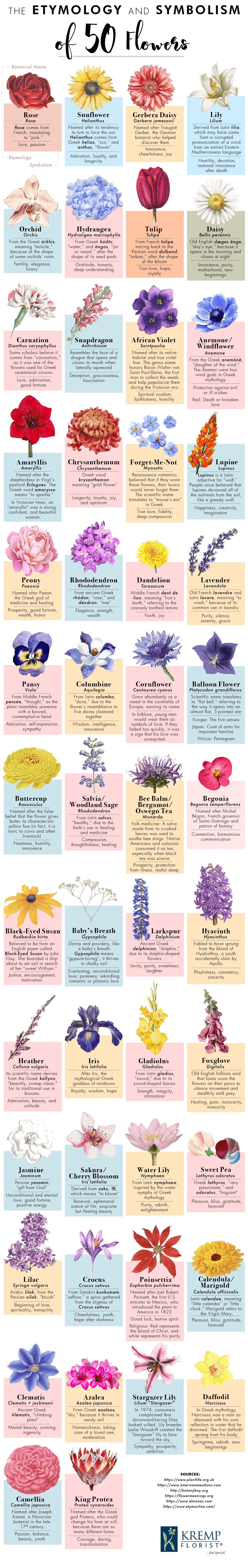 Infographic : The Etymology and Symbolism of 50 Flowers