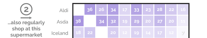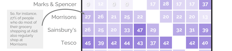 Secondly, a caption explains the meaning of an single intersecting cell, using plain English to help support the viewer’s interpretation rather than leave them to spend time forging their own understanding. This is a great example of a designer caring about an audience and coaching them through the reading process.