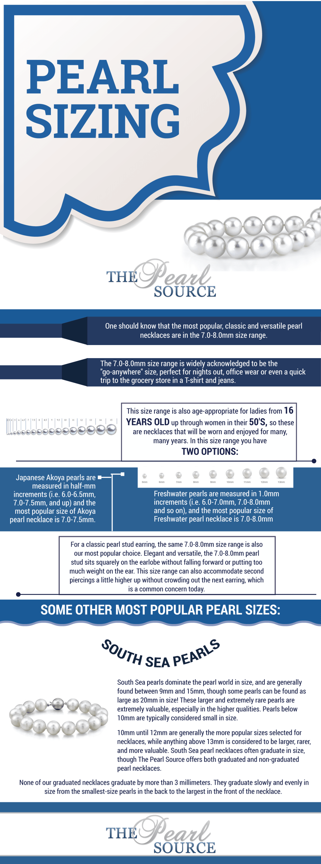 This is the perfect education guide on pearl sizing. Learn about the many variations available to you, in an easy to read chart. Infographic created by thepearlsource.com