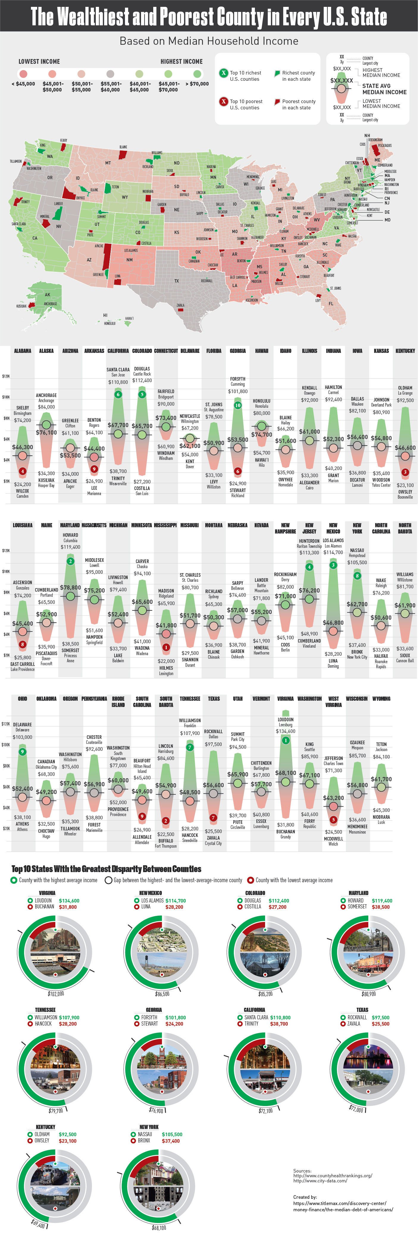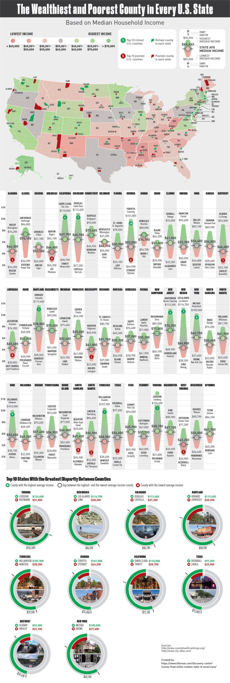 Infographic : The Wealthiest and Poorest County in Every U.S. State