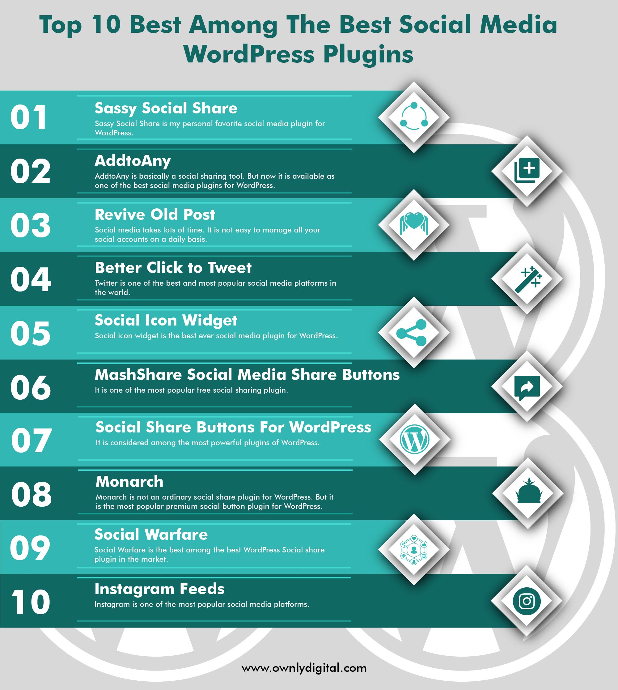 Infographic : Top 10 Best Among The Best Social Media Plugins For WordPress