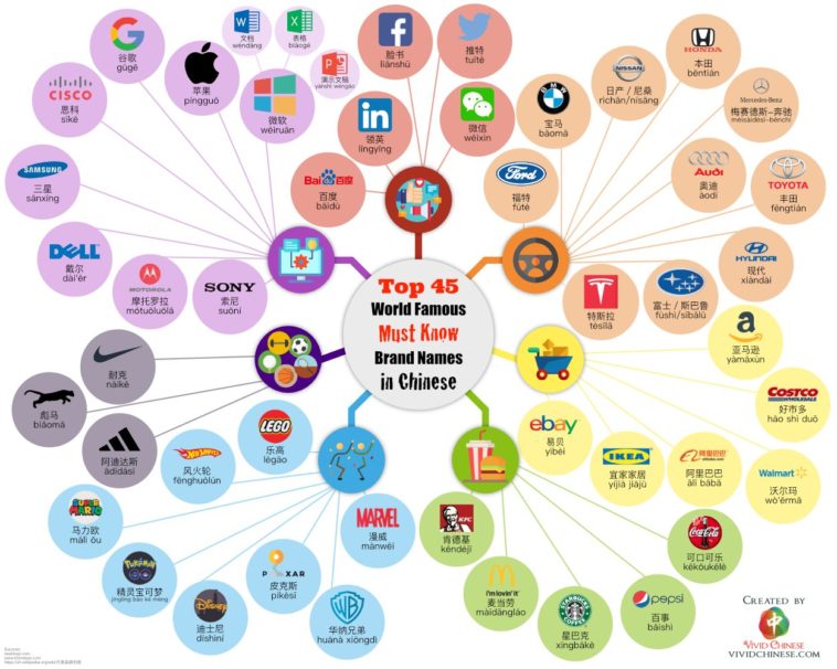 Infographic : Top 45 World Famous Must Know Brand Names in Chinese