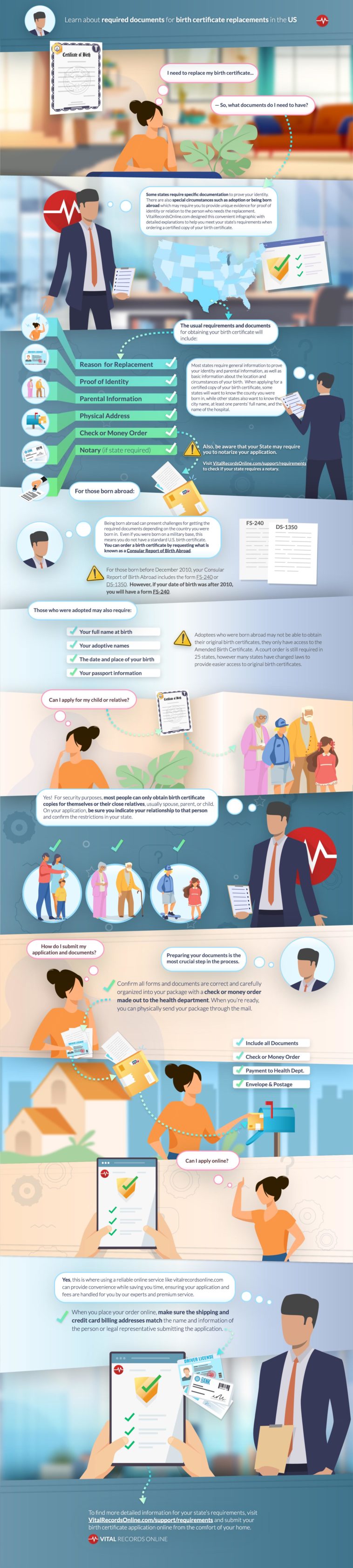 I would have no idea where to start to replace my birth certificate, if I needed to, What documents are required for birth certificate replacement infographic would be a useful piece of information to help me navigate the process.