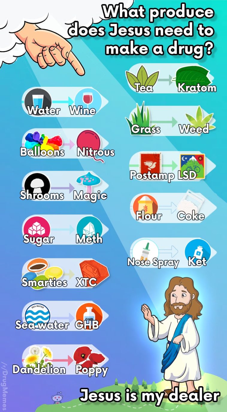 Infographic : What if Jesus could turn other produce in to drugs besides Wine from Water?