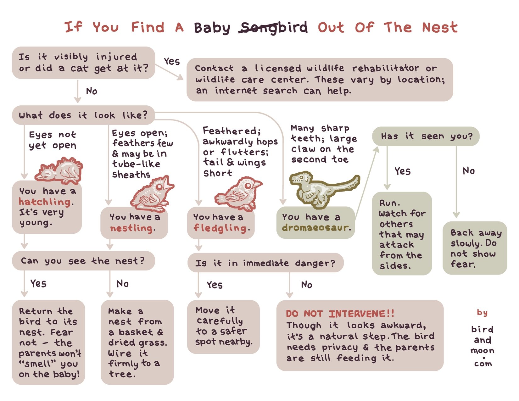 What to do if you find a bird out of the nest! Birdandmoon.com’s simple and awesome infographic.