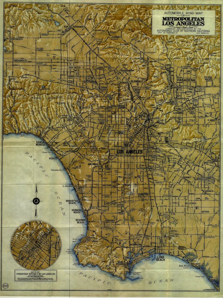Map Info & Chart : 1930 road map of Los Angeles. Pre-freeway.