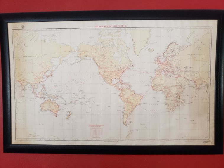 1939 Air routes of the world 50″ x 30″ bought at an estate sale. Rolled up for $8. Any information would be appreciated.